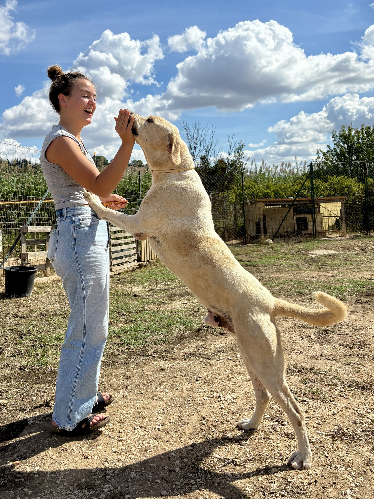 seiner Mutter getrennt worden ist und er nicht die Möglichkeit hatte positive Erfahrungen mit Menschen zu machen. Außerdem wurde er einmal im Canile gebissen, was zur Folge hatte, dass er dann